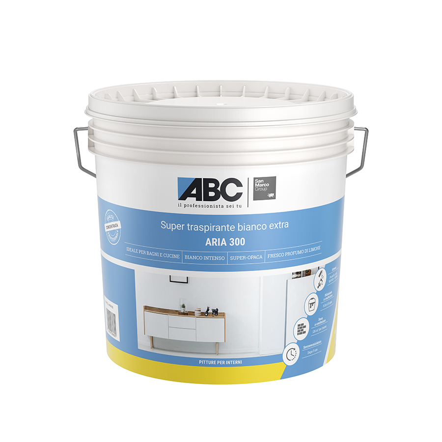 ARIA 300 è una pittura traspirante adatta per applicazioni all'interno; è caratterizzata da un elevato potere coprente, da una buona dilatazione e dall'aspetto finale vellutato ad elevato punto di bianco.