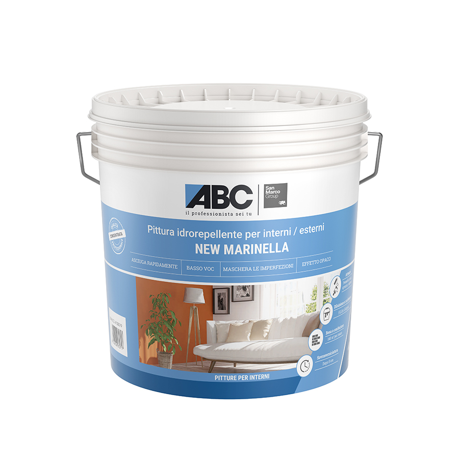 NEW MARINELLA è una pittura traspirante idrorepellente adatta per l'impiego su superfici interne o esterne protette.