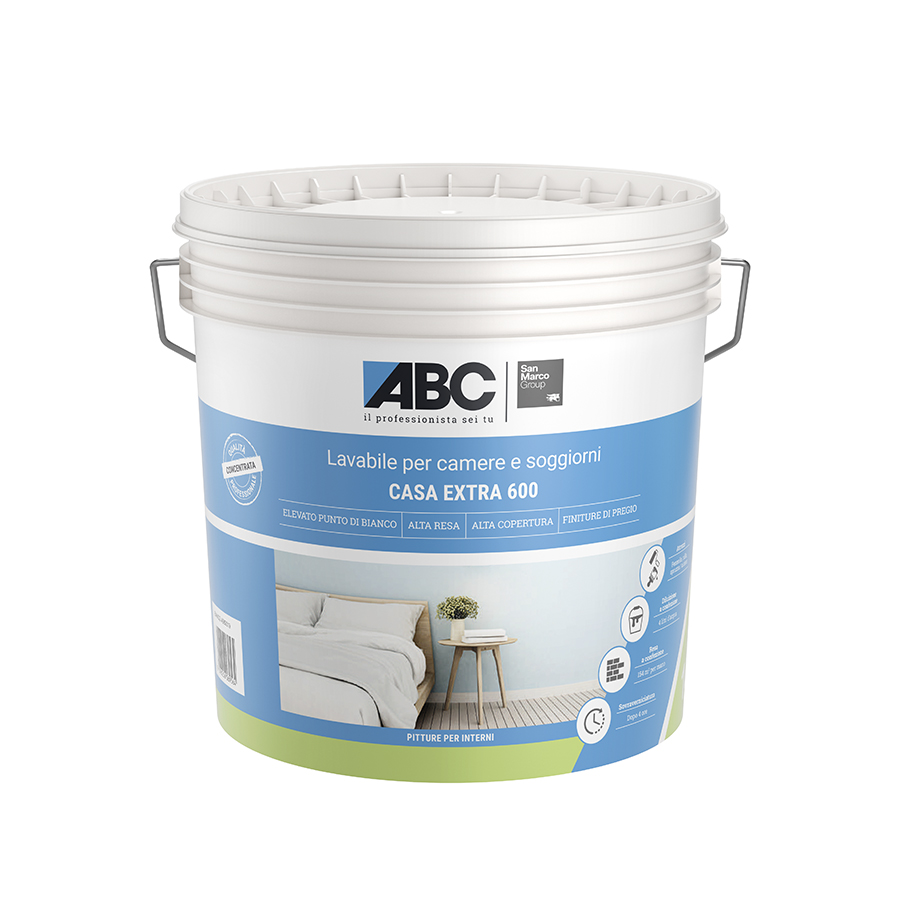 CASA EXTRA 600 è una pittura acrilica lavabile, che permette di ottenere finiture di pregio ad elevato punto di bianco e molto opache.